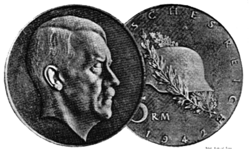 Pattern 5-Reichsmark, 1942. The last contemplated Nazi commemorative.